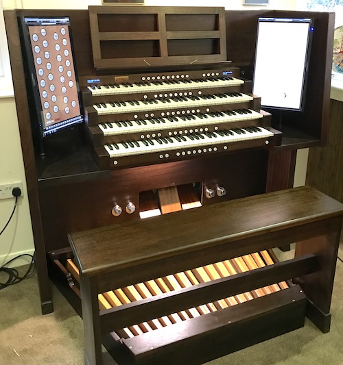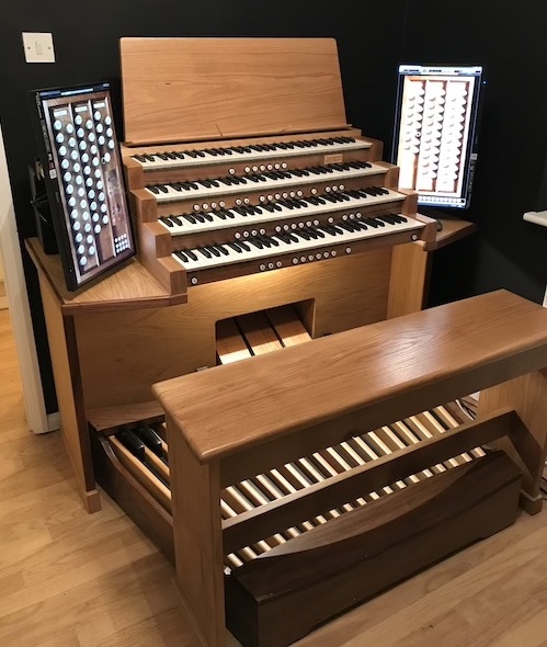 Our new consoles have evolved from customer desires for smaller, higher spec virtual organs than is typically possible to achieve with a repurposed console. They are typically built in two pieces to allow easier transport and installation, especially if you wanted the organ upstairs.